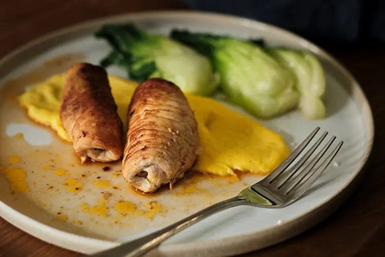 Saftige Putenrouladen auf Polenta und Pak Choi