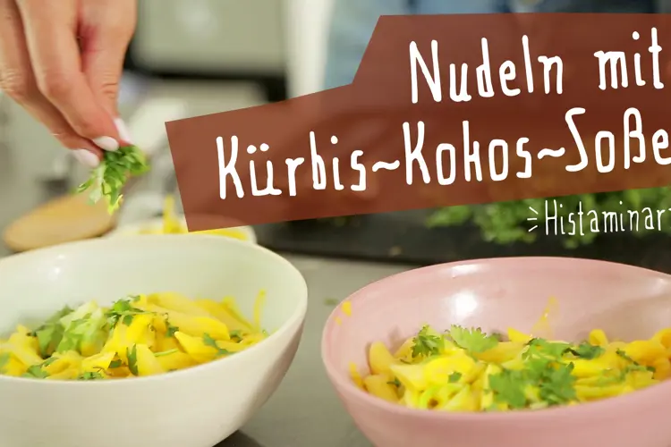 Wie steht es bei Kokos und Kürbis um Histamin? Keine Sorge, dieses Gericht ist wirklich histaminarm. Und nicht nur das, die Nudeln mit Kokosmilch sind fix zubereitet und hinterlassen ein wohliges Gefühl. Aber überzeugen Sie sich selbst davon mit diesem Video.